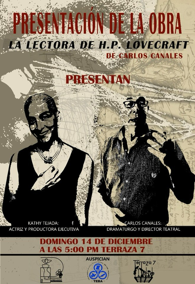 Palabra, Imagen y Escena, que es es un espacio artístico creado para la difusión de la obra de poetas, narradores, dramaturgos y artistas visuales que producen su obra en español, finaliza sus actividades del año 2025, con la presentación de La Lectora de HP Lovecraft, escrita y dirigida por Carlos Canales, actuada por la reconocida actriz, Kathy Tejada, producción de Teatro TEBA; el domingo 14 de diciembre, a las cinco de la tarde, en Terraza 7, en el corazón de Queens, Nueva York, entre Elmhurst y Jackson Heights.