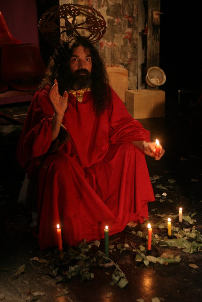 Muerte, resurrección y muerte. Dirigida por Raúl Cortés. Coproducción de La Periférica (España) y del Teatro Experimental Fontibón (TEF). Crítica a la ciega burocracia y la pretensión de justicia que, en su formalidad, solo se convierte en una tragicomedia de poder, donde el hombre crea un sistema que, en su afán de ordenar el caos, termina atrapado en su propia farsa.