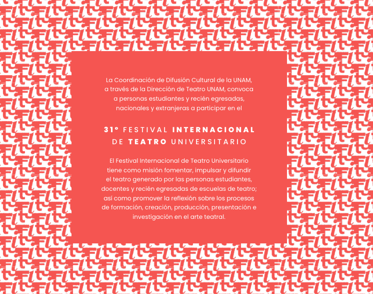 El Festival Internacional de Teatro Universitario (FITU) celebrará 31 años de existencia. Desde 1993 a la fecha, el festival lanza, cada año sin falta, su convocatoria de participación.