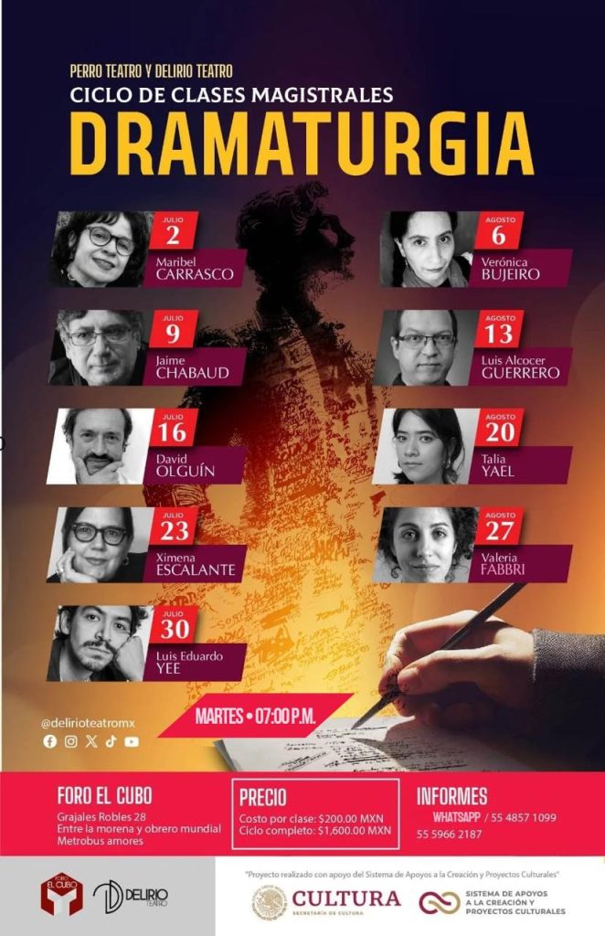 En este ciclo de clases magistrales de dramaturgia que se inicia este martes, conversaremos y aprenderemos de la experiencia y amplio conocimiento de destacad@s dramaturg@s de México.