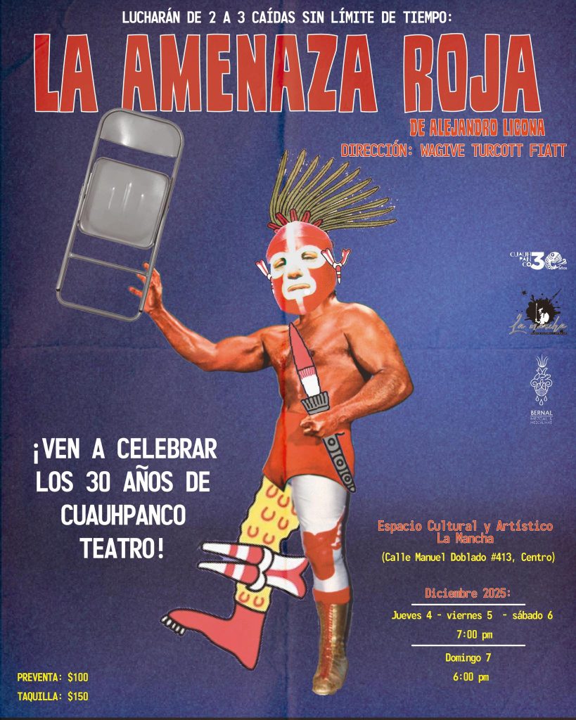 Se extiende una vez más la invitación para unirte a la celebración presenciando La amenaza roja una divertida farsa situada en los años 80 que nos recuerda que el teatro es ese encuentro colectivo donde enfrentamos nuestra propia humanidad. Las funciones son del jueves 4 domingo 7 de diciembre del 2025 en el Centro Cultural La Mancha (Manuel Doblado #413, Oaxaca, Centro). La entrada es de $150 y $100 en preventa. Boletos en la taquilla o en: https://www.ticketopolis.com/amenazaroja/tickets.aspx