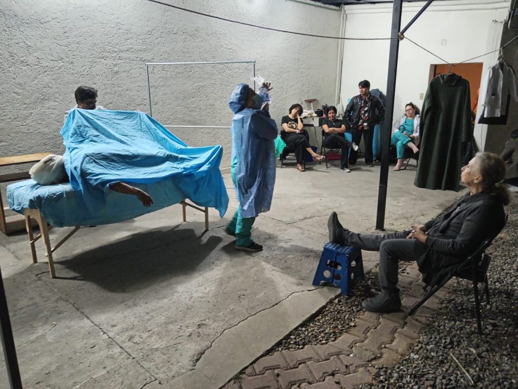 Wagive Jiménez: “Este modelo de producción que tiene Cuauhpanco es de cooperativa. Este montaje (‘La amenaza roja’) es un gran ejemplo, como lo ha sido la mayoría de los montajes, donde cada persona que participa identifica que hay algo en sus casas que tiene y puede formar parte de la producción de la obra. Esta agrupación tiene más de 100 montajes, hemos contado con 5 apoyos institucionales en estos 30 años, y todas las obras que se han hecho son de la comunidad. Siempre hay alguien que puede aportar, por supuesto la bolsa y el sueldo de la fundadora del grupo ha sido uno de los financiamientos más fuertes, como el de cada uno de los integrantes de este grupo.