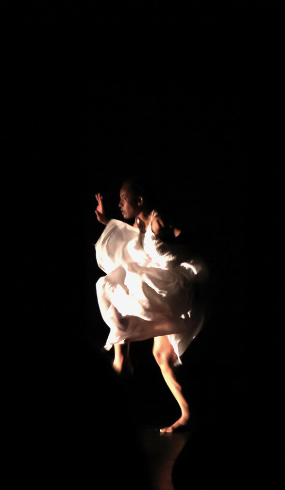 En una pequeña pantalla se apuntala la acción de Catalina en el escenario. Mientras ella en físico nos muestra cierta sensación, en el video vemos que se está comiendo una fruta. Sus compañeros frente a nosotros son un ropero y un espejo. El ropero funciona como nuestro cuerpo de donde salen las emociones, es decir: Catalina sale del ropero en donde se siente encerrada y poco a poco, en el transcurso de la obra ira entrando y en su mayor parte, saliendo de él mientras escuchamos el discurso de una mujer que duda, que da un paso y duda, que va a salir y duda, tiembla. Mientras su cuerpo que contrasta con el blanco de su vestido se mueve y nos muestra lo que siente, escuchamos su voz hablando ya de una o de otra sensación. Llega un momento en el que se acuesta sobre el ropero mientras vemos una ciudad de noche. El ropero puede ser igualmente su espíritu y su mente y lo que Catalina nos muestra es lo que esa mujer que representa, una mujer negra siente.