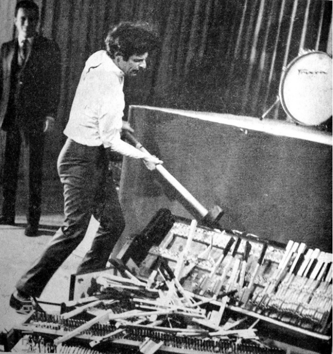 Jodorowsky destrozando un piano en un programa de televisión (1967).