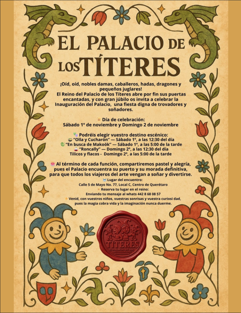 En el corazón del centro histórico de Querétaro, entre calles que resguardan siglos de arte y memoria, ha nacido un lugar que promete encender la imaginación que nunca duerme: El Palacio de los Títeres, un espacio exclusivo para las infancias creado por el actor y titiritero Raúl Ángeles, quien ha dedicado su vida a transformar la ternura, el juego y la fantasía en espectaculos teatrales para niños y niñas.