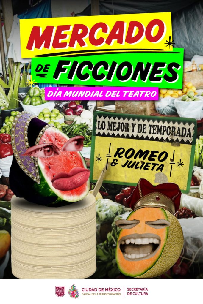 En el marco de la celebración por el Día Mundial del Teatro, que se conmemora cada 27 de marzo desde 1961 por iniciativa del Instituto Internacional del Teatro (ITI), de la UNESCO, la Secretaría de Cultura de la Ciudad de México presenta una campaña de conciencia y visibilización en redes sociales con la propuesta Mercado de ficciones en la que se hace una alegoría al mundo teatral, como un mercado en el que se ofertan propuestas para todas las audiencias, con una diversidad tan amplia como la de frutas y verduras.
