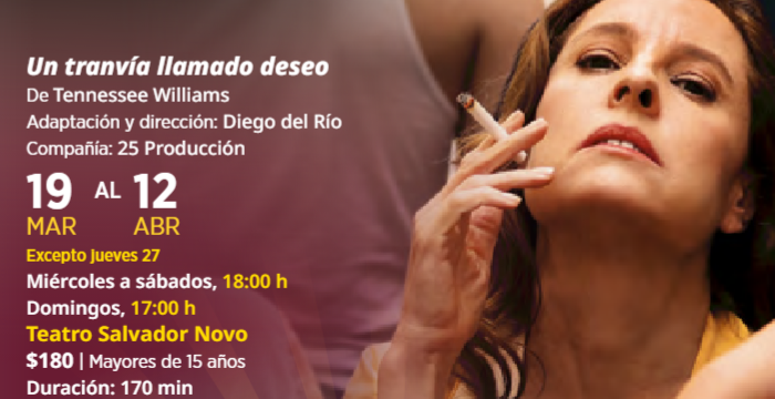 Un tranvía llamado deseo, en su versión contemporánea, dirigida por Diego del Río, tuvo una muy exitosa temporada de 22 funciones en el Teatro Julio Castillo del Centro Cultural del Bosque. Sin embargo, un gran número de personas se quedó sin verla, debido a que logró atraer tanto como una película de Marvel en la cartelera cinematográfica.