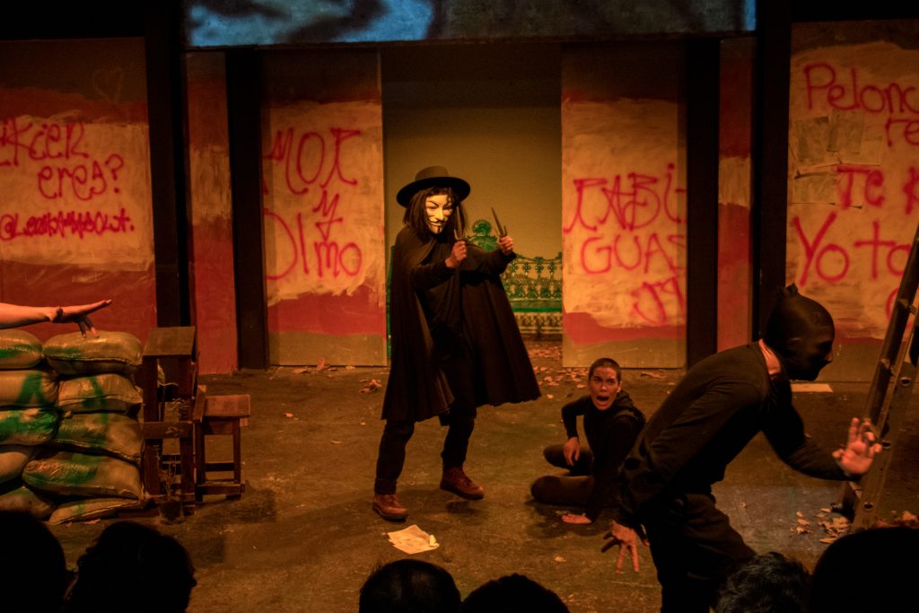En escena nos acompañan Sunem Cedillo, Santiago Alfaro, David Juan Olguín Almela, y Emmanuel Pavía, que nos presentaran a una juventud idealista, con ímpetu revolucionario, entre derroches de energía nos muestran diferentes perspectivas de un mismo conflicto. Citados en las profundidades por “La mano”, interpretado por Laura Almeda, un activista radical, Olguín nos muestra los extremos de las luchas sociales de una sociedad lastimada.